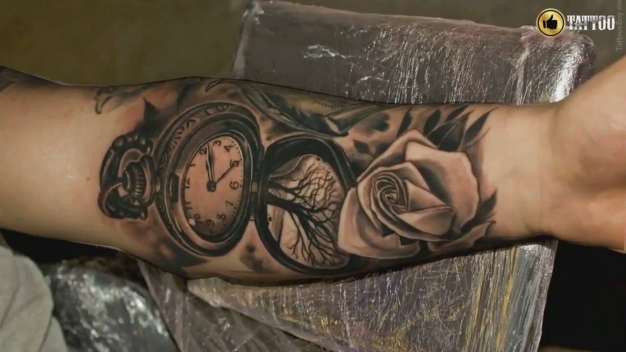SHORT VERSION Broken clock and rose Tattoo Time Lapse (2021) - Broken Clock Tattoo With Roses